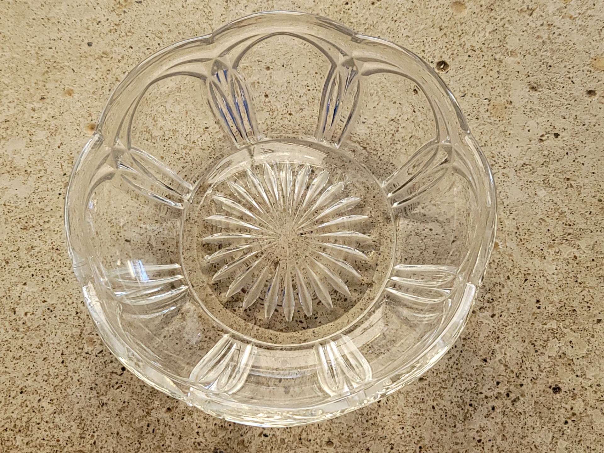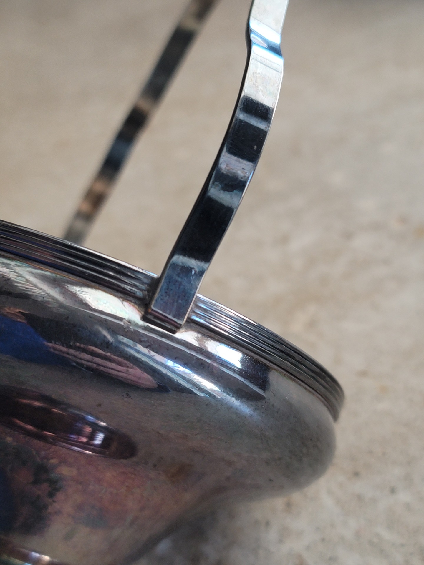 Súčasťou je originálne tvarované držadlo v štýle Art Deco a sklenená miska s brúseným dnom.