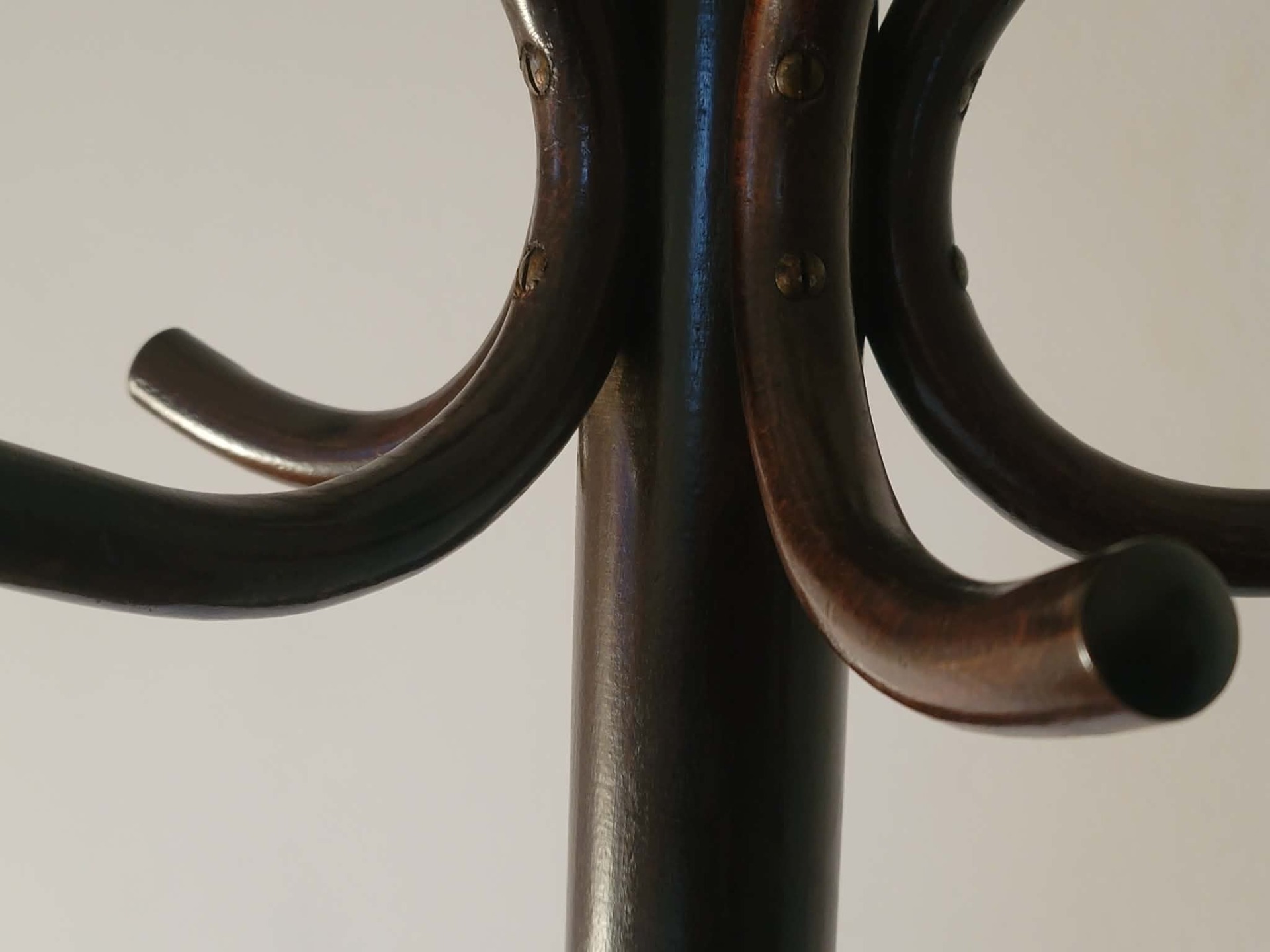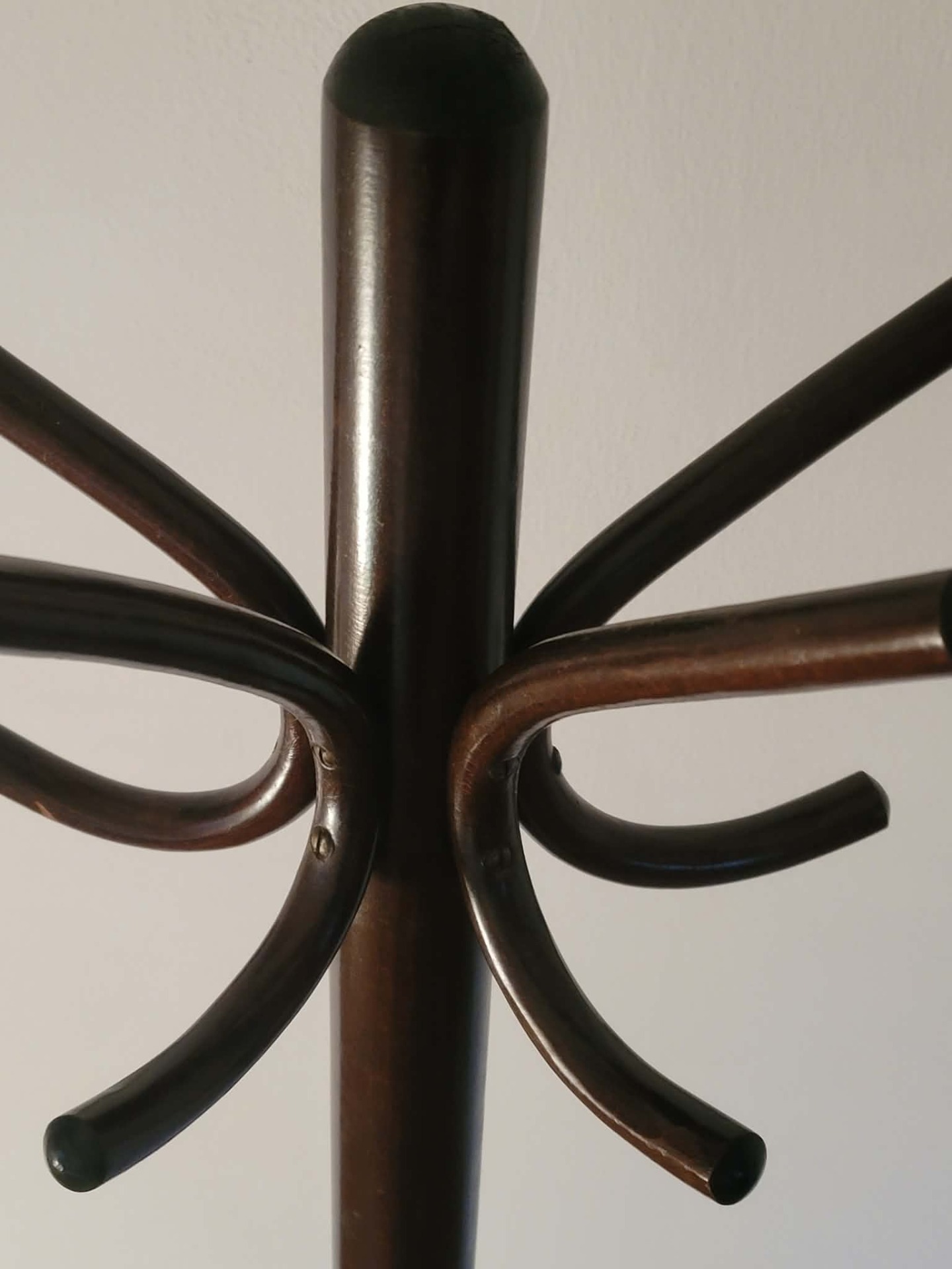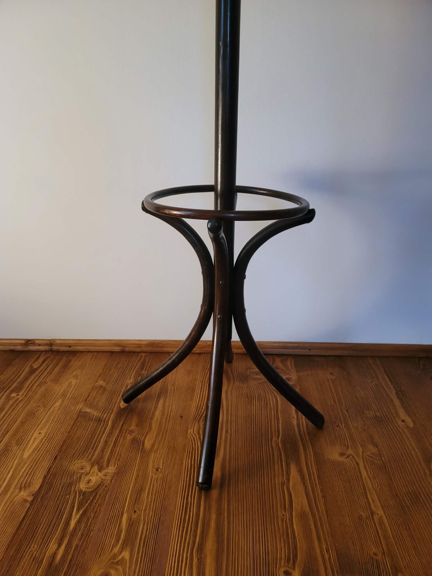 Elegantný stojanový vešiak z ohýbaného buku, ikonický model zo série Thonet / TON 17, vyrábaný v Československu v 50. rokoch.
