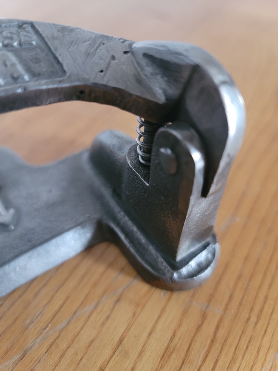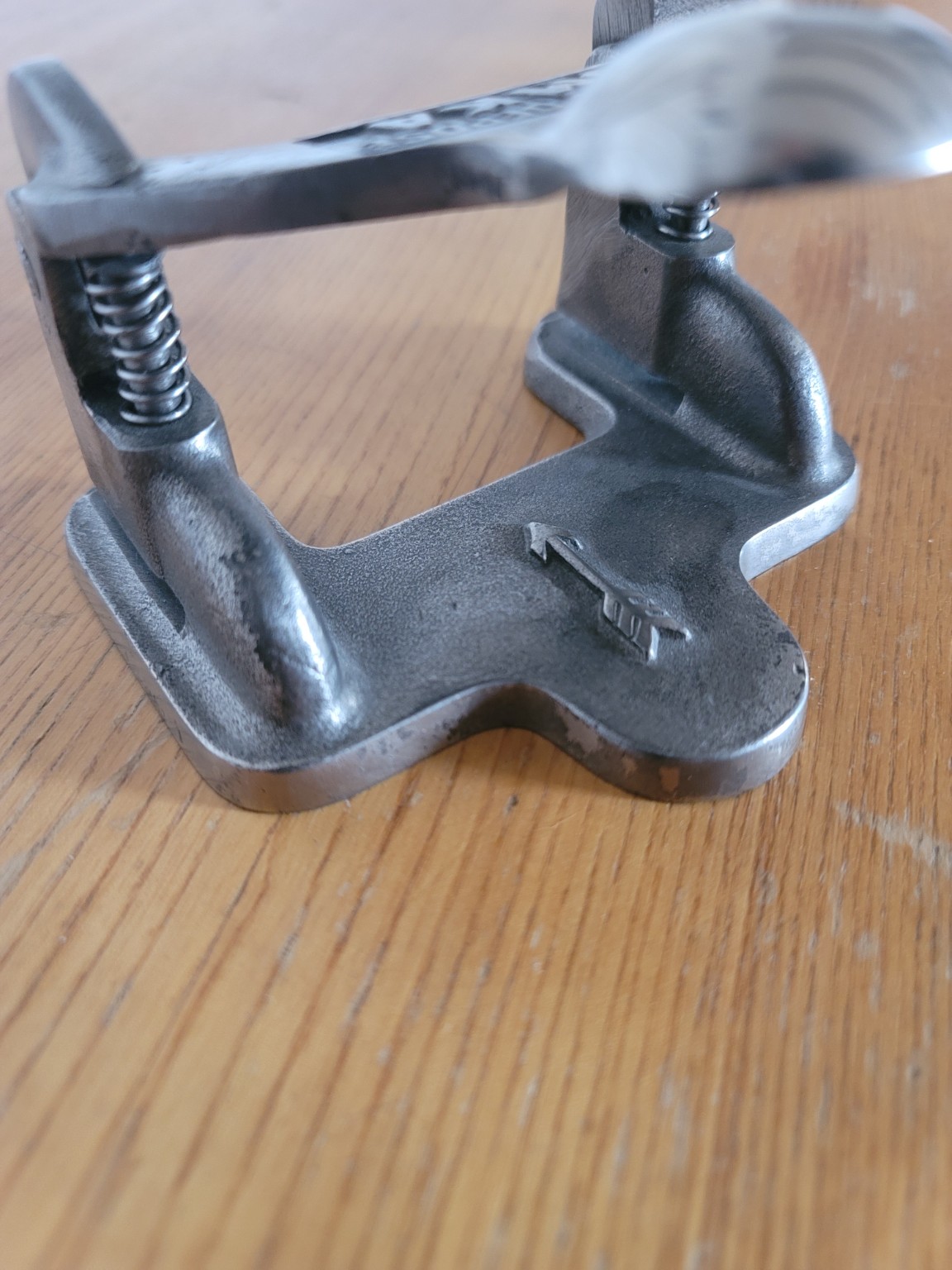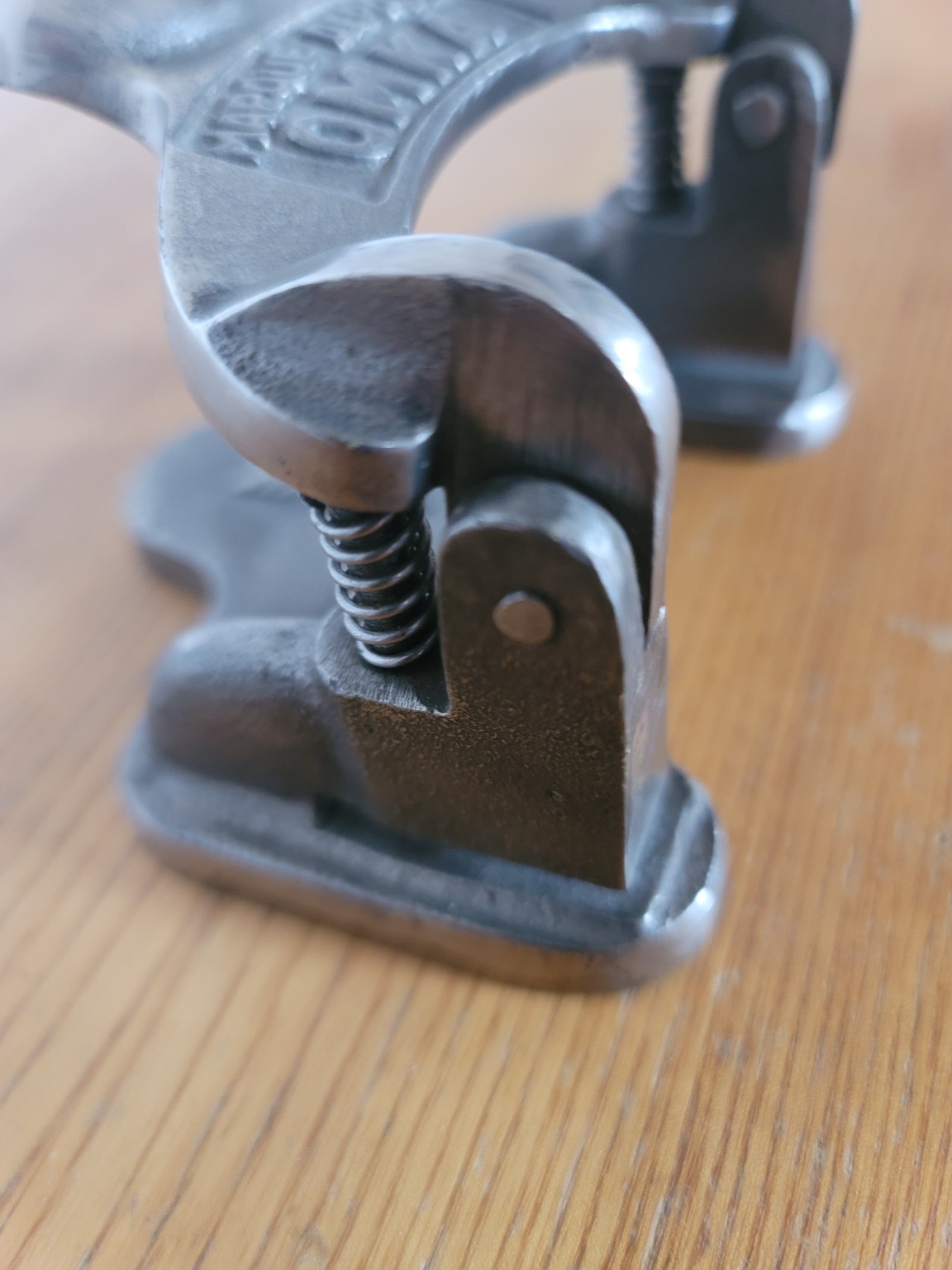 Masívna konštrukcia z liateho kovu, precízna mechanika a prirodzená patina robia z tohto kusu nielen plne funkčný kancelársky nástroj, ale aj výrazný industriálny dizajnový objekt. Leštená guľa na páke kontrastuje s matným povrchom základne a zvýrazňuje remeselnú kvalitu výroby.