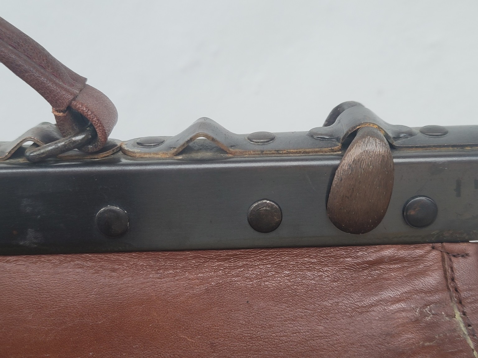 Veľmi dobrý vintage stav s prirodzenými znakmi veku a používania (patina, drobné škrabance). Bez prasklín, švy pevné, kovanie funkčné.